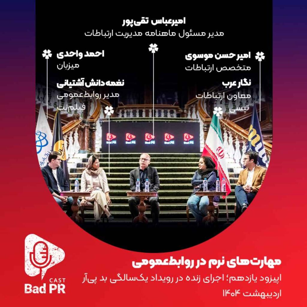رویداد روز ارتباطات و روابطعمومی همزمان با یکسالگی پادکست و ویدیوکست بدپیآر با حمایت ایرانمال، میلیگلد، چنان استدیو و چاپآقا برگزار شد